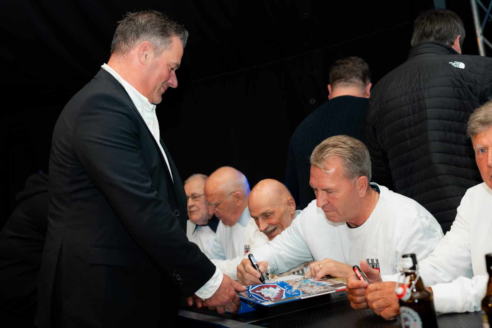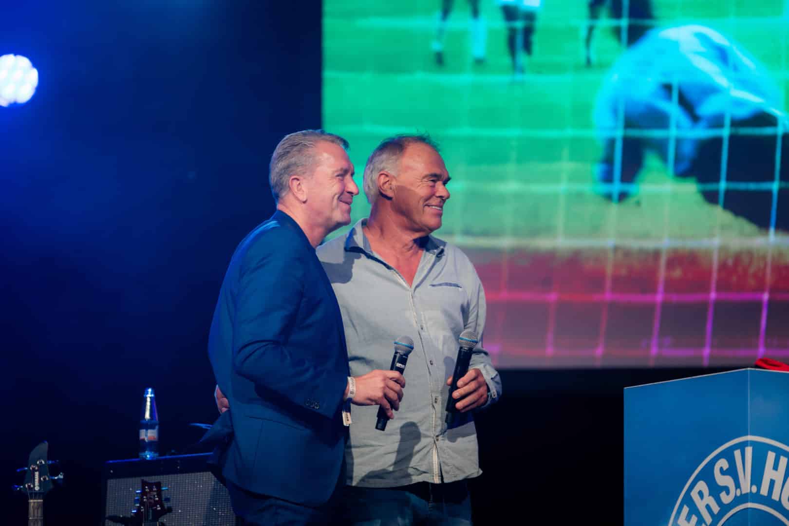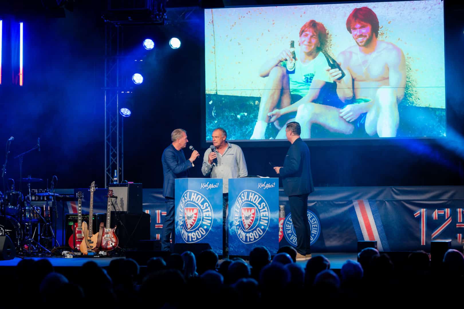 „Olympique Marseille, der 1. FC Nürnberg und jetzt Holstein Kiel: Drei meiner Ex-Klubs haben nun in der jüngeren Vergangenheit ihren 125. Geburtstag gefeiert. Das sind alles echte Traditionsvereine, die Höhen und Tiefen erlebt haben und deren Fangemeinde stetig gewachsen ist. Diese Tradition bekommt man nicht geschenkt“, würdigte der ehemalige Weltklassetorhüter neben seinen früheren Vereinen auch unsere KSV im Rahmen der Jubiläumsfeier, bei der er zum Ende des Abends noch eine echte Überraschung erlebte. Denn unser Clubhistoriker Patrick Nawe präsentierte, als Köpke gerade mit Ex-Teamkollege Immo Stelzer auf der Bühne stand, die Hose des früheren Holstein-Keepers, die er in seinem letzten Spiel für unsere Farben getragen hatte. „Du kannst mir doch nicht ernsthaft erzählen, dass ich das Ding anhatte. Das gibt’s nicht“, entgegnete Köpke lachend. Ein echtes Highlight der großen Geburtstagsfeier – aber seht selbst: Die Szene gibt’s hier noch einmal im Video ⬇️