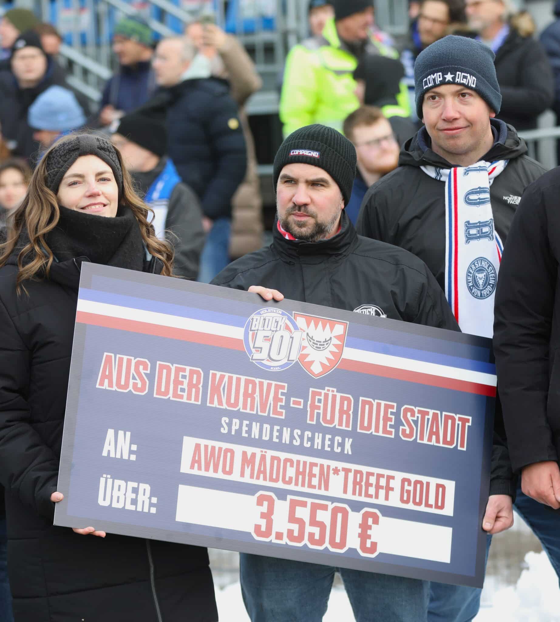 Für die Adventszeit hatte sich unser Fandachverband Block 501 etwas Besonderes überlegt: Am vierten Advent fand auf dem Vorplatz des Holstein-Stadions ein von den Fans organisierter Weihnachtsmarkt statt, der überaus gut angenommen wurde. Die dort erzielten Gewinne sollten im Anschluss für einen wohltätigen Zweck in Kiel zur Verfügung gestellt werden. Die feierliche Spendenübergabe des Fan-Dachverbandes Block 501 e.V. im Vorfeld des Heimspiels gegen Schalke war ein voller Erfolg und zeigte eindrucksvoll, was echte Fangemeinschaft bedeutet.