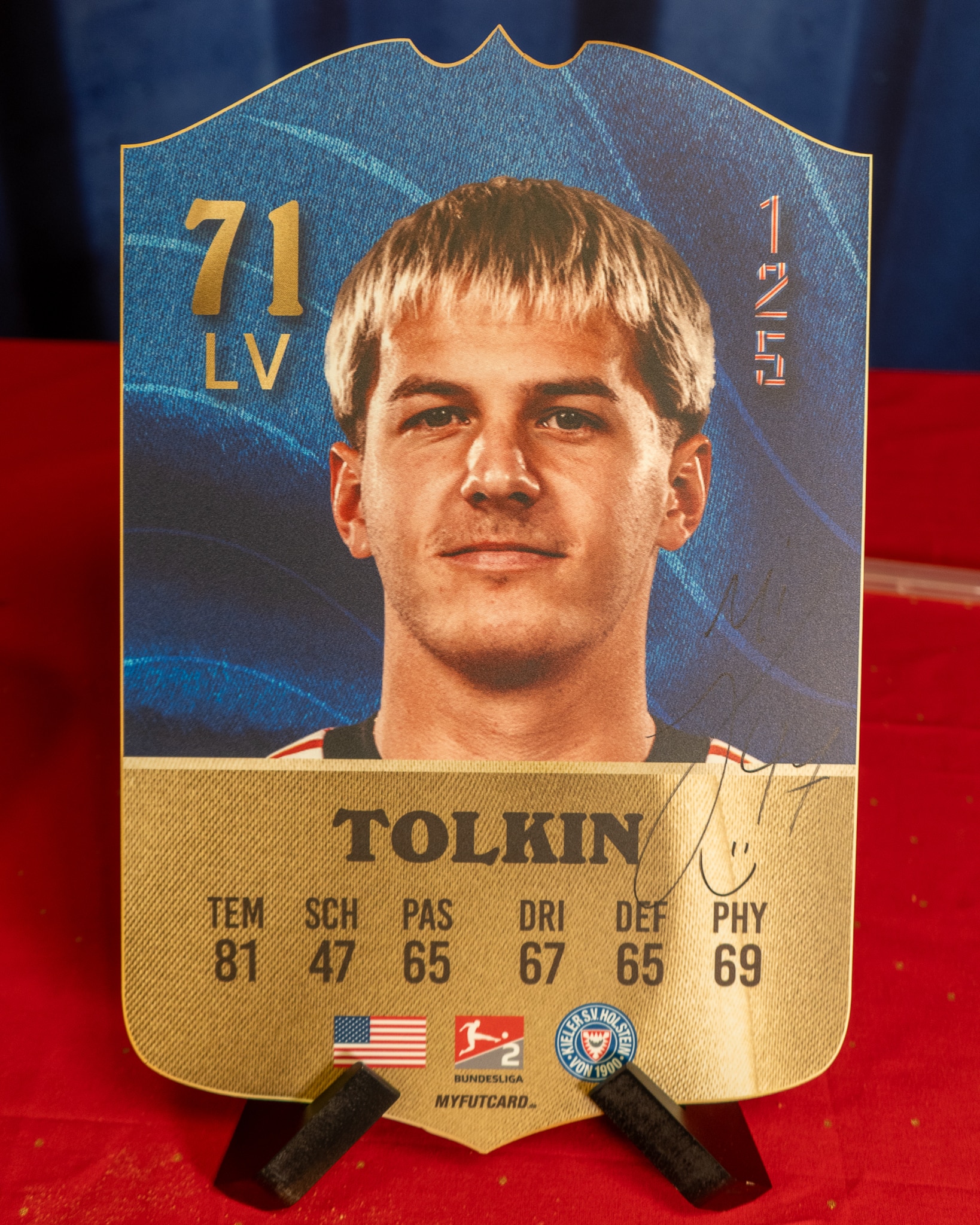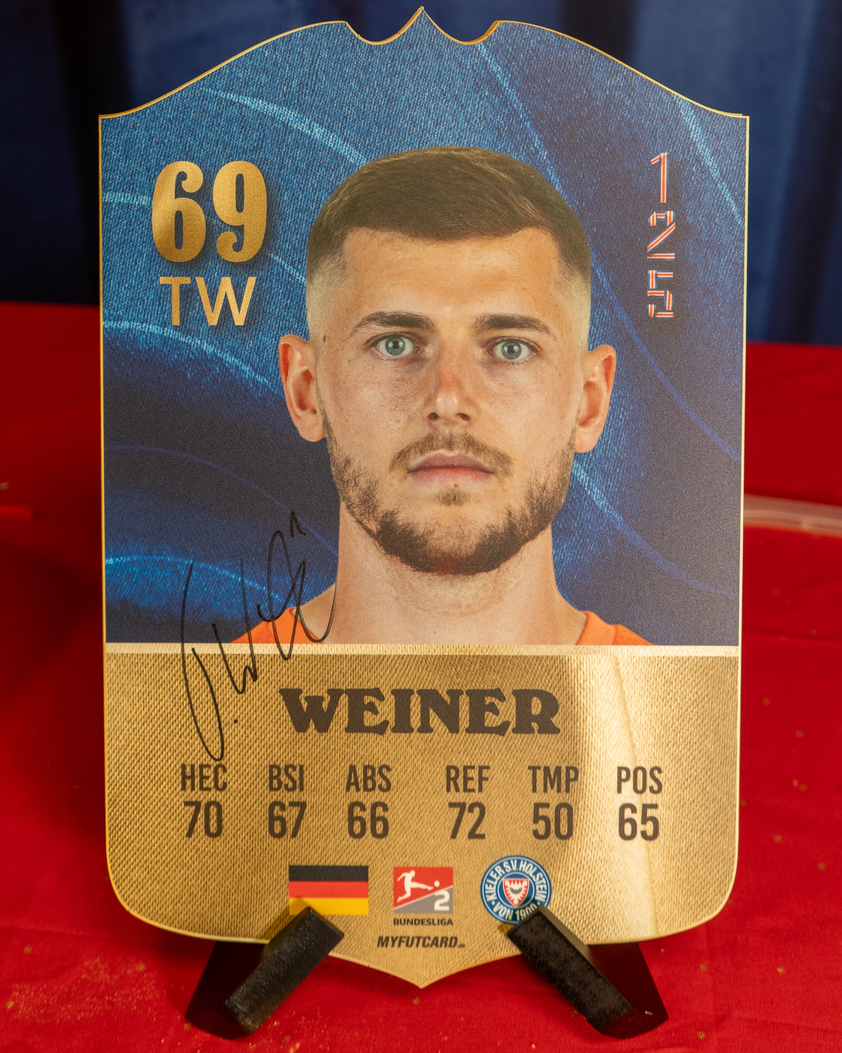 Außerdem können die handsignierten „FUT-Shields“ von Louis Köster, Andu Kelati, Timon Weiner, Marco Komenda und John Tolkin ersteigert werden. Hinweis: Die Halterung ist nicht Teil der Auktion.