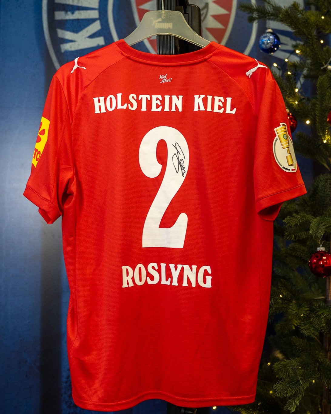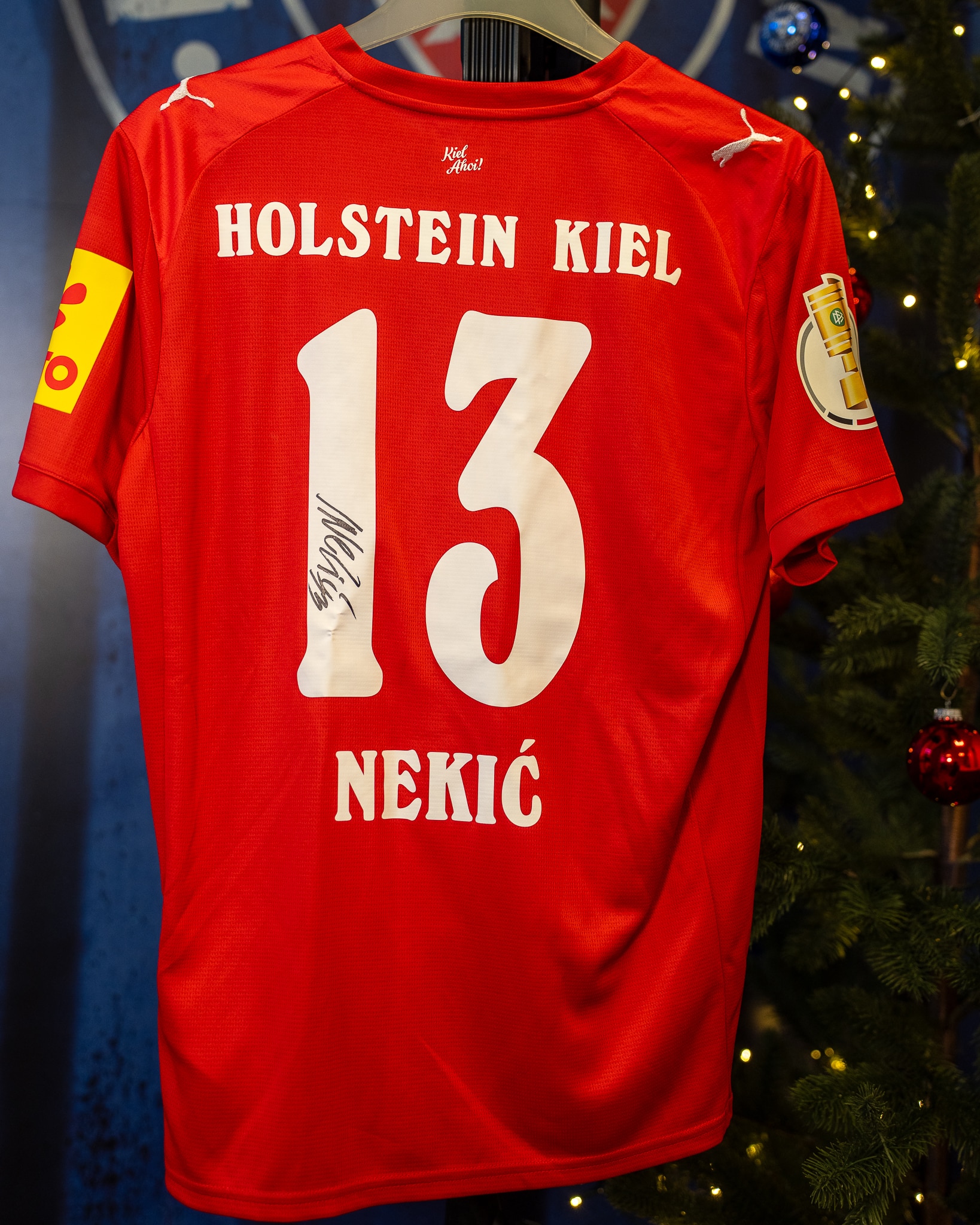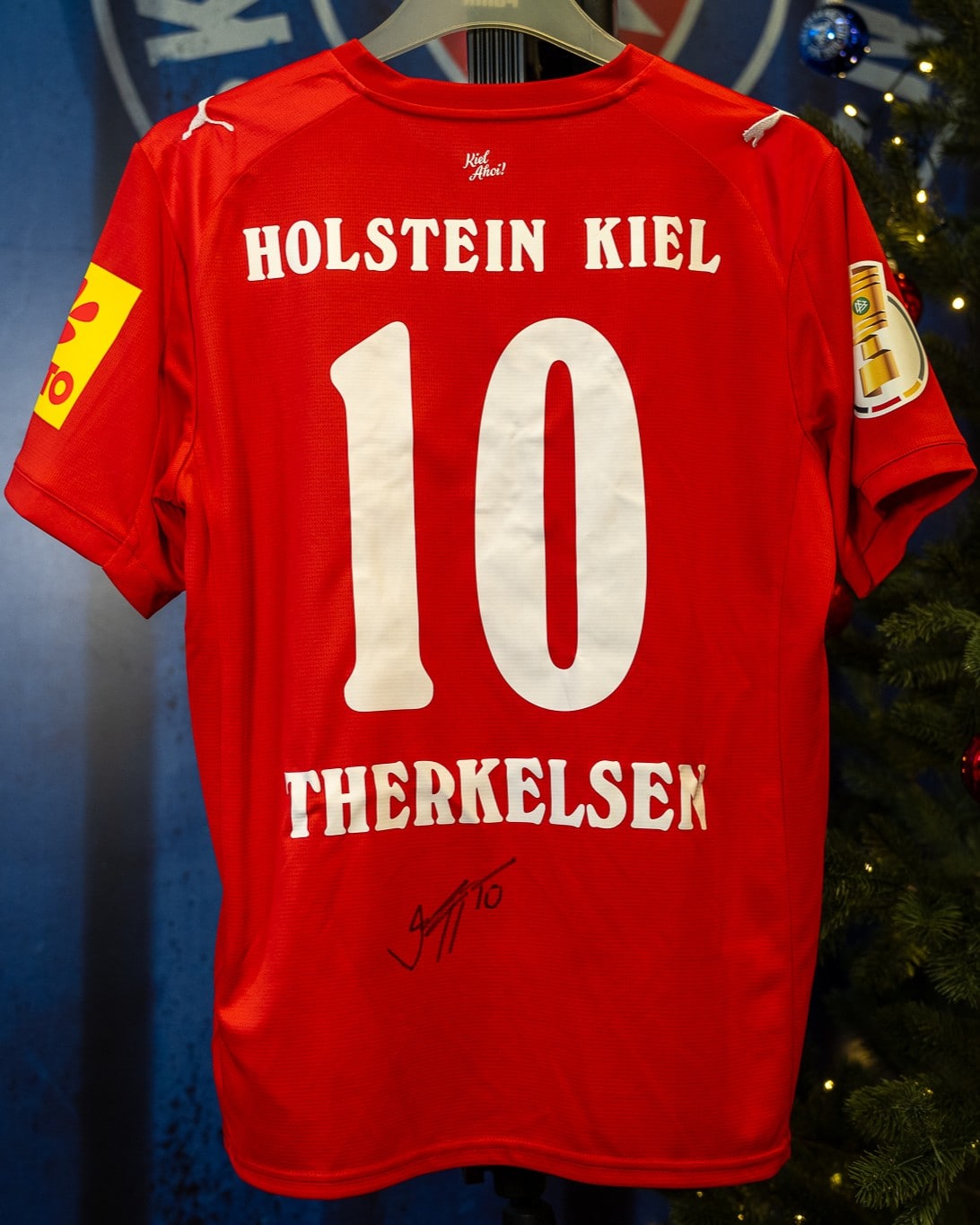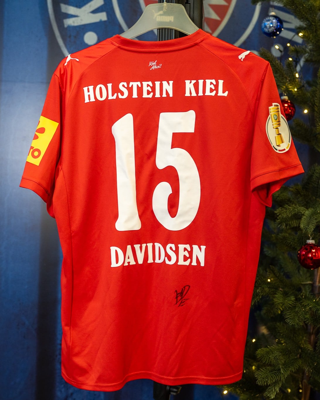 Es war eines der Highlights in der ersten Saisonhälfte für all diejenigen, die es mit Holstein Kiel halten: der spannungsgeladene Erfolg über den Hamburger SV im DFB-Pokal-Achtelfinale Anfang Dezember. Unsere Mannschaft spielte im aktuellen Auswärtstrikot und wir haben euch einige der am Spieltag bereitgestellten Exemplare gesichert. Die Trikots von Jonas Therkelsen (Größe M), Ivan Nekic (Größe M), Niklas Niehoff (Größe M), Frederik Roslyng (Größe L), Kasper Davidsen (Größe L), Marcus Müller (Größe L) und Marco Komenda (Größe M) wurden gewaschen und signiert und stehen ab sofort auf der Auktion zur Verfügung.