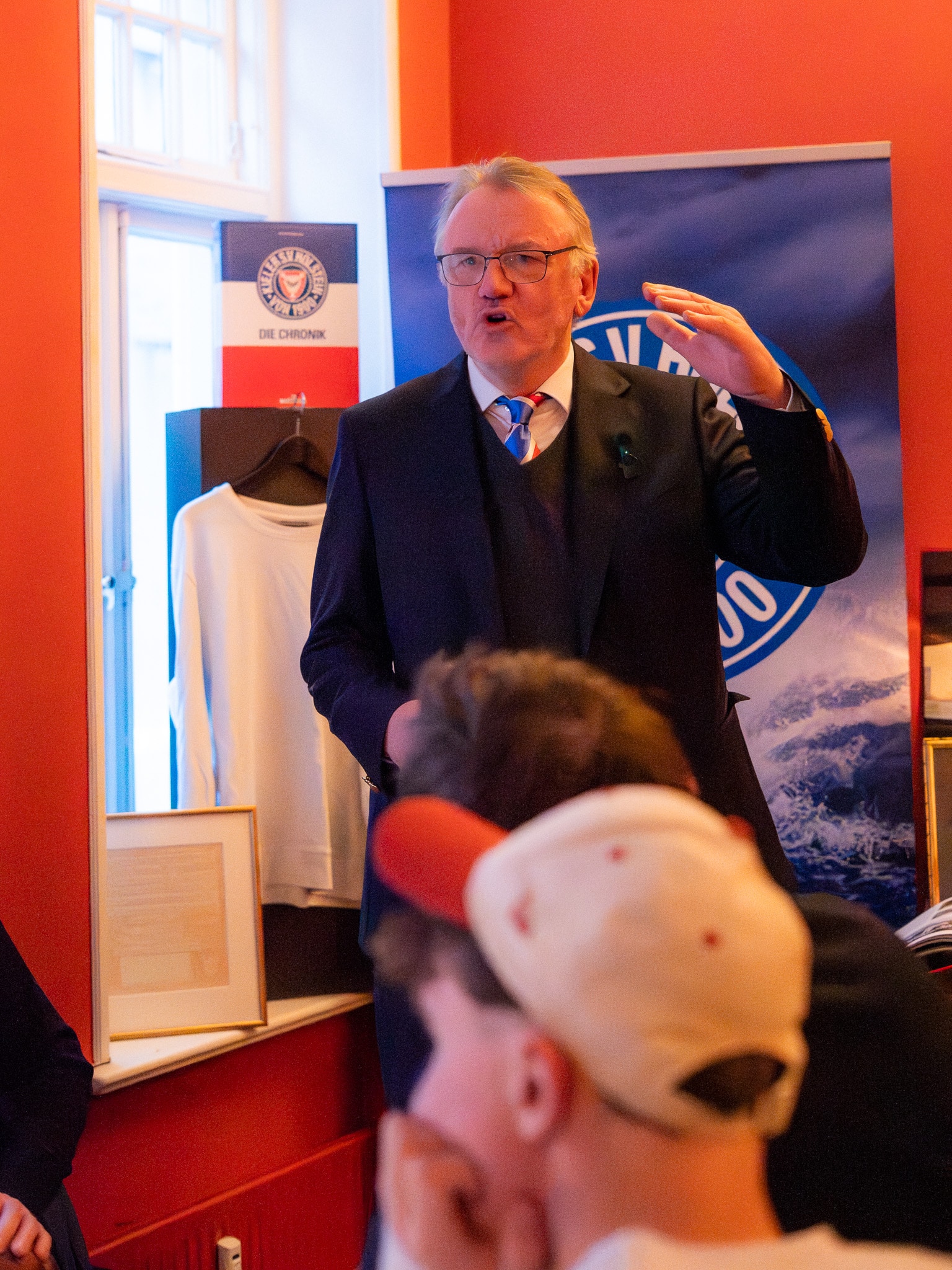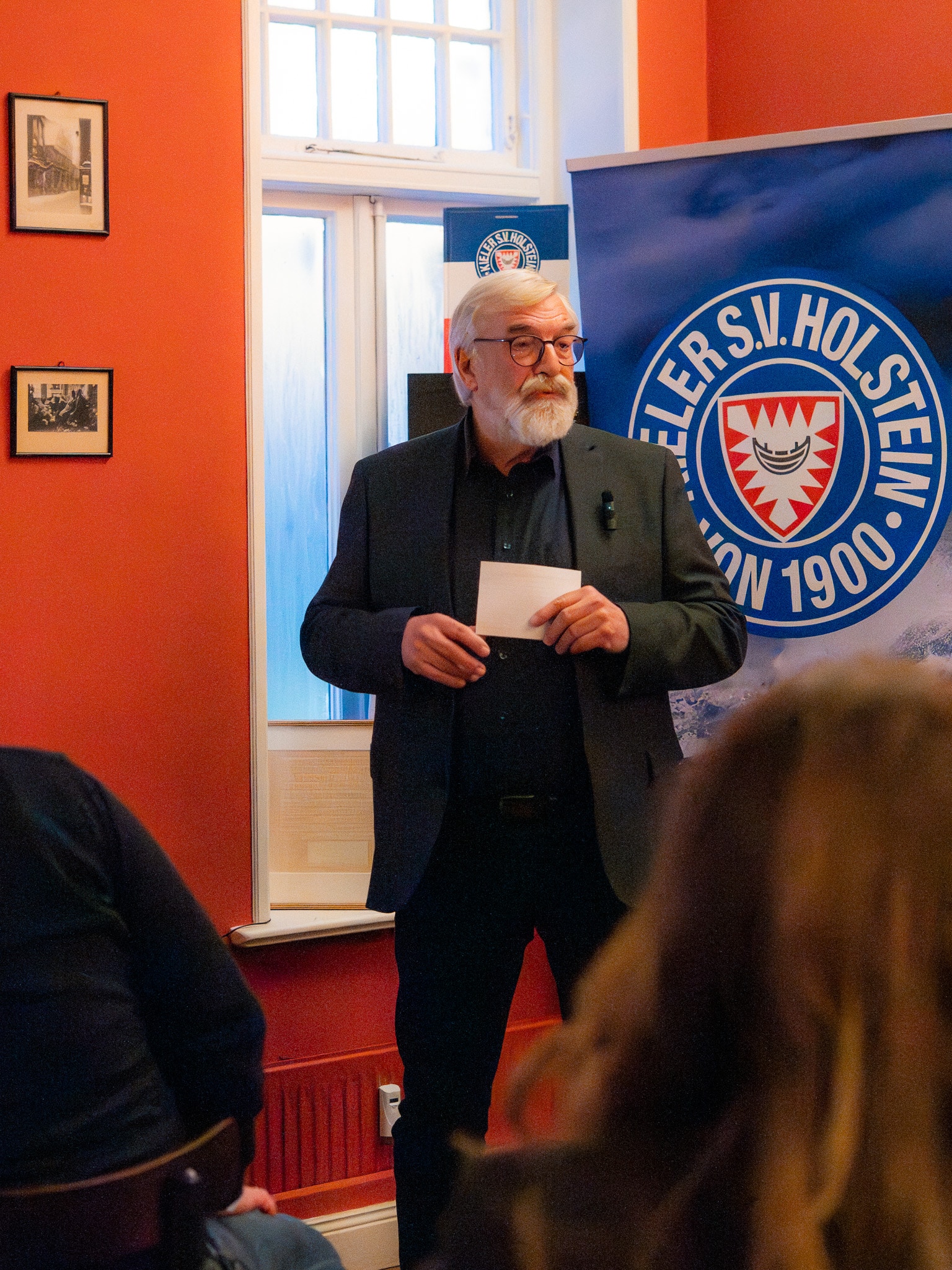 „Wir haben uns heute hier eingefunden, um diesem großen Fußballpionier – denn genau das war Georg P. Blaschke – zu gedenken. Uns als Verein ist es ein großes Anliegen, sein Andenken zu bewahren. Deshalb wollen wir heute, am 150. Jahrestag seines Geburtstages, eine Gedenktafel vor seinem früheren Wohnhaus enthüllen“, eröffnete KSV-Präsident Steffen Schneekloth die Gedenkfeier im benachbarten Lüneburg-Haus. Dort waren zahlreiche geladene Gäste zusammengekommen, darunter auch Familienmitglieder Blaschkes, um an den Gründervater der KSV zu erinnern. Vor Ort lauschten die Anwesenden drei Kurzvorträgen: Club-Historiker Patrick Nawe sowie die Historiker Jürgen Weber und Rolf Fischer gaben dabei eindrucksvolle Einblicke in Leben und Wirken Blaschkes als Fußballpionier, Sportfunktionär und Kieler Stadtrat.