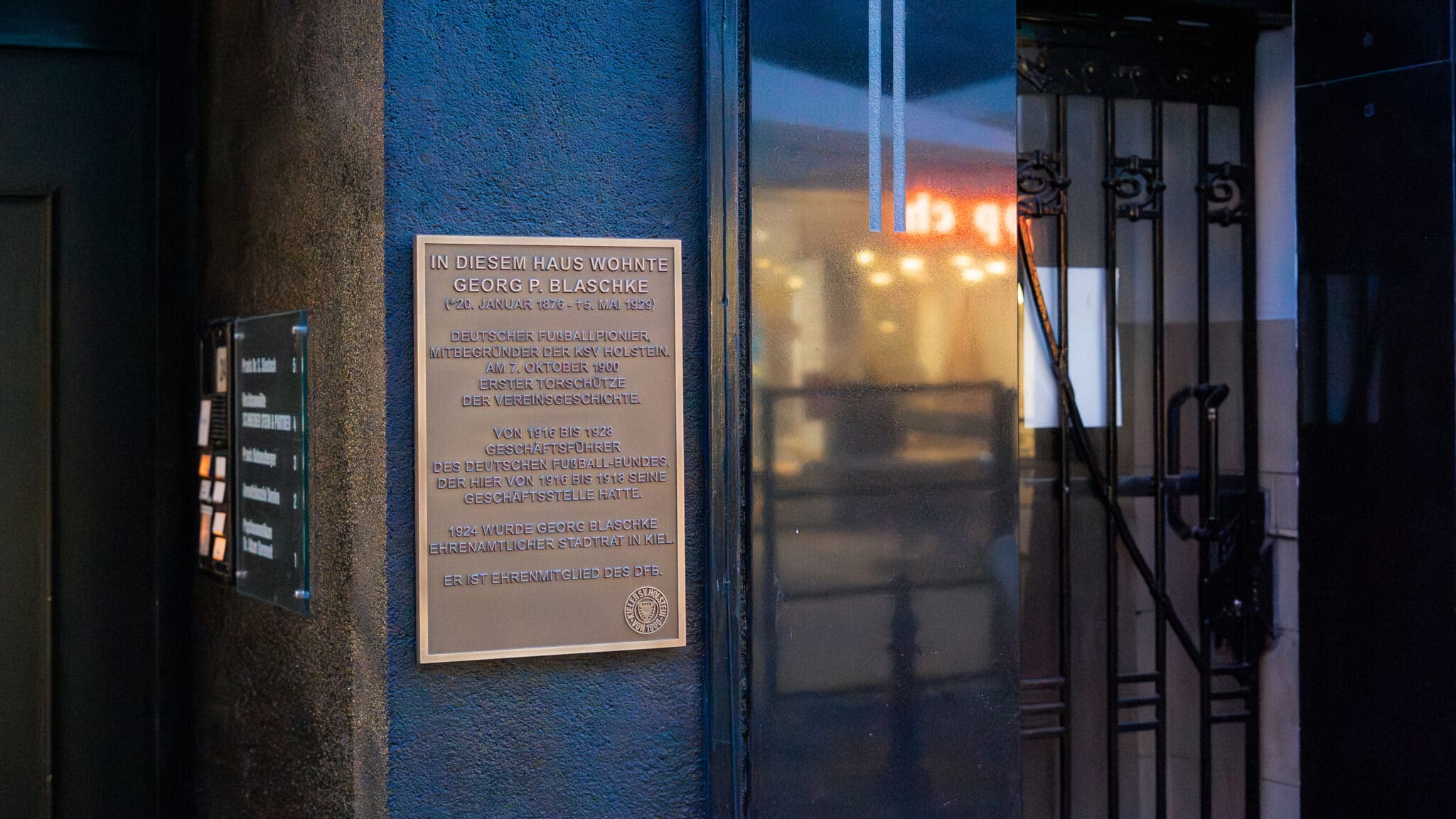 Am 20. Januar 2026 wäre mit Georg P. Blaschke einer der vielleicht bedeutendsten Funktionäre unserer Vereinsgeschichte 150 Jahre alt geworden. Zu diesem Anlass hat unsere KSV Holstein am Dienstag bei einer feierlichen Gedenkveranstaltung zu seinen Ehren eine Gedenktafel an seinem ehemaligen Wohnhaus in der Dänischen Straße 24 aufgehängt – und so einen weiteren Erinnerungsort der Kieler und deutschlandweiten Fußballgeschichte geschaffen.