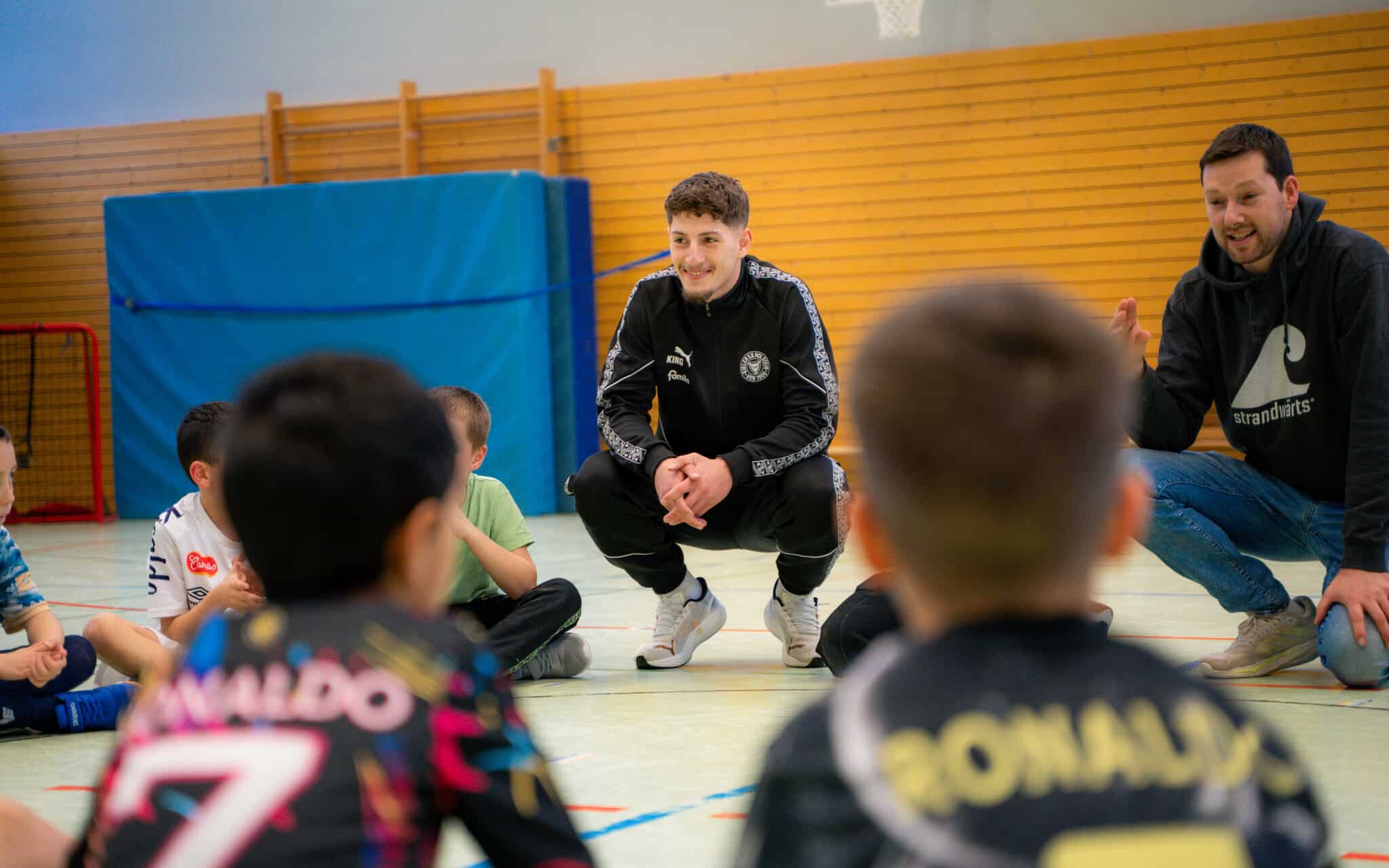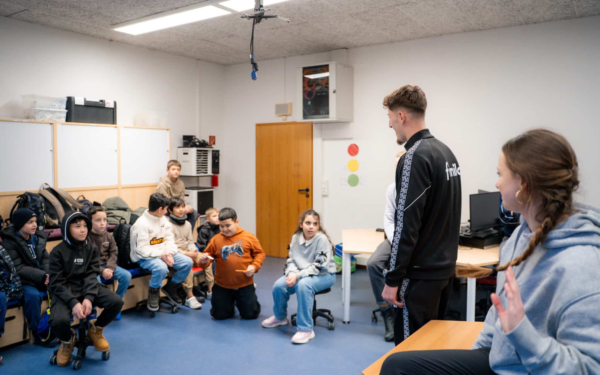 Bereits seit 2023 beteiligt sich unsere KSV Holstein an dem integrativen Bildungsprogramm „Fußball trifft Kultur“ (FtK). Der Kieler Standort des Projekts, bei dem Kindern grundlegende Werte wie Teamwork, Fairplay und Respekt vermittelt werden, befindet sich an der Schule am Heidenberger Teich im Stadtteil Mettenhof. Nachdem der bisherige Projektpate Thomas Dähne im vergangenen Sommer zum TSV 1860 München gewechselt war, trat nun mit Hamza Muqaj ein Spieler aus dem aktuellen Kader unserer KSV dessen Nachfolge an.