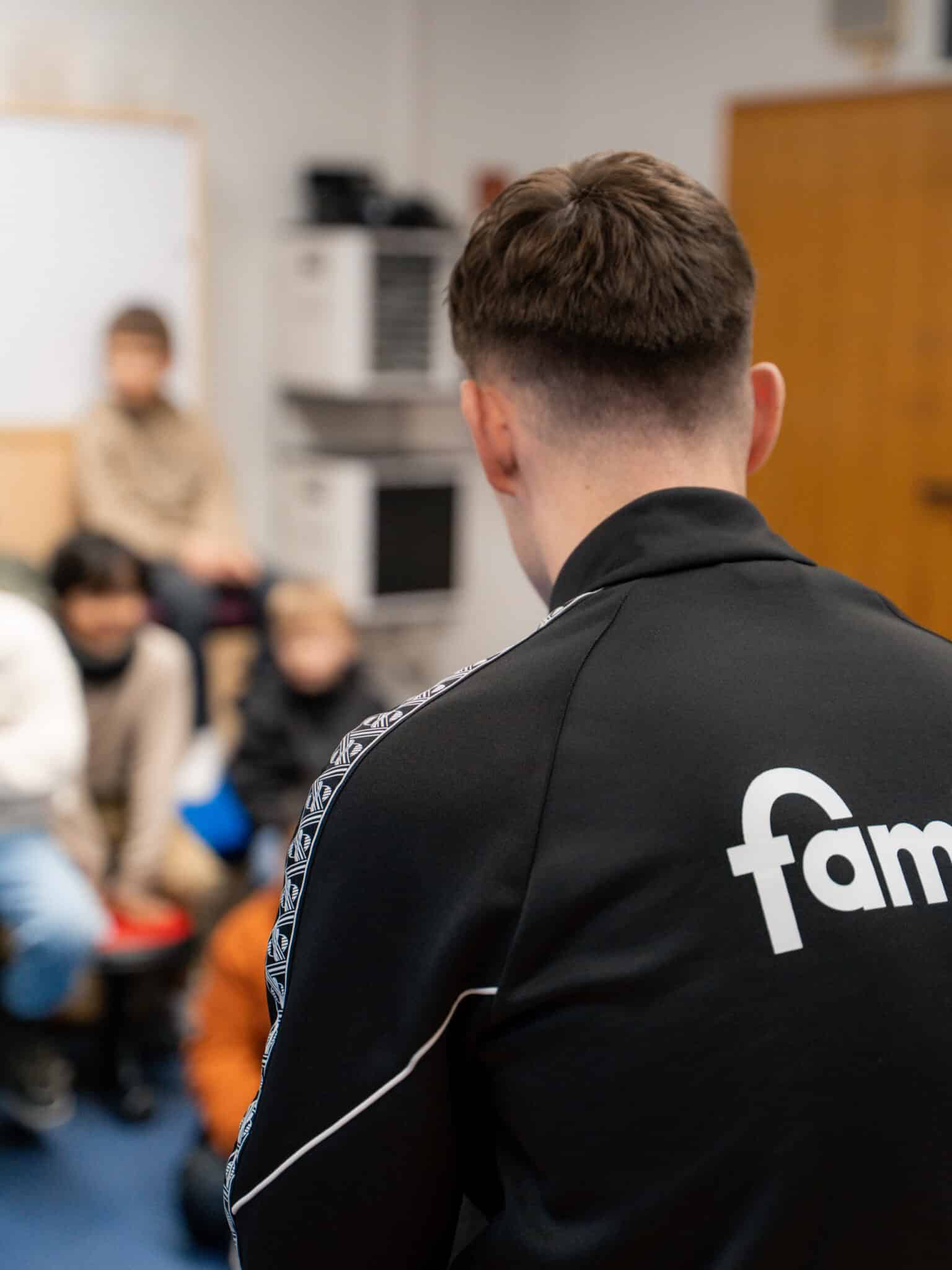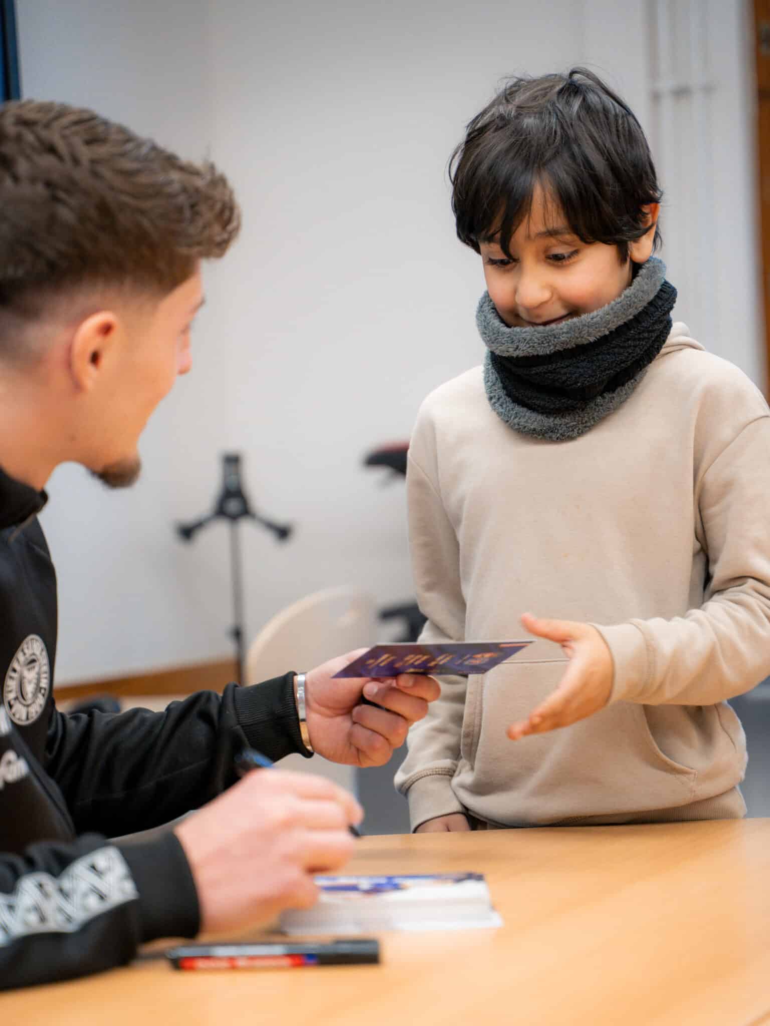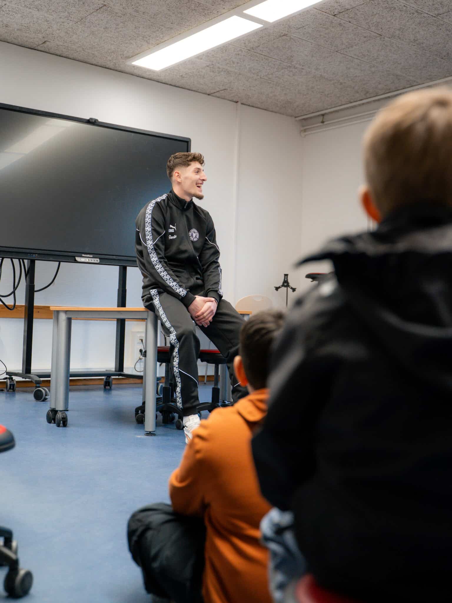 Vergangene Woche schaute Hamza Muqaj an der Schule am Heidenberger Teich vorbei und stellte sich als neuer Pate des Projekts vor. Der 20-Jährige wuchs in Berlin auf, wechselte im vergangenen Sommer vom FC Carl Zeiss Jena ins Storchennest und sagte bei der Anfrage, Dähnes Nachfolge als Projektpate anzutreten, direkt zu. Vor Ort beantwortete der Mittelfeldspieler zunächst im Klassenzimmer viele Fragen der Drittklässler und erfüllte anschließend noch etliche Autogrammwünsche, ehe es gemeinsam mit den Kindern in die Sporthalle ging. Dort brachte der kosovarische U21-Nationalspieler den Schülern nicht nur manchen Trick bei, sondern kickte auch eine Runde mit. „Ich hatte das Gefühl, dass die Mischung aus Unterricht und Bewegung bei den Kindern sehr gut ankommt. Es war richtig schön zu sehen, mit wie viel Freude sie mitgemacht haben. Es ist einfach ein tolles Projekt, welches ich sehr gerne als Pate unterstütze“, sagte Muqaj.