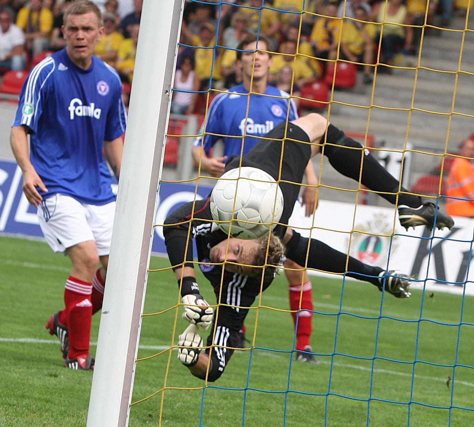 Der in Nordfriesland groß gewordene Keeper hatte in Kiel eine neue Heimat gefunden – und ein neues sportliches Glück. Denn zuvor musste Frech mit seinen beiden Vereinen Lübeck und Siegen binnen sechs Monaten durch ein wahres Jammertal schreiten – beide Clubs mussten Insolvenz anmelden.
