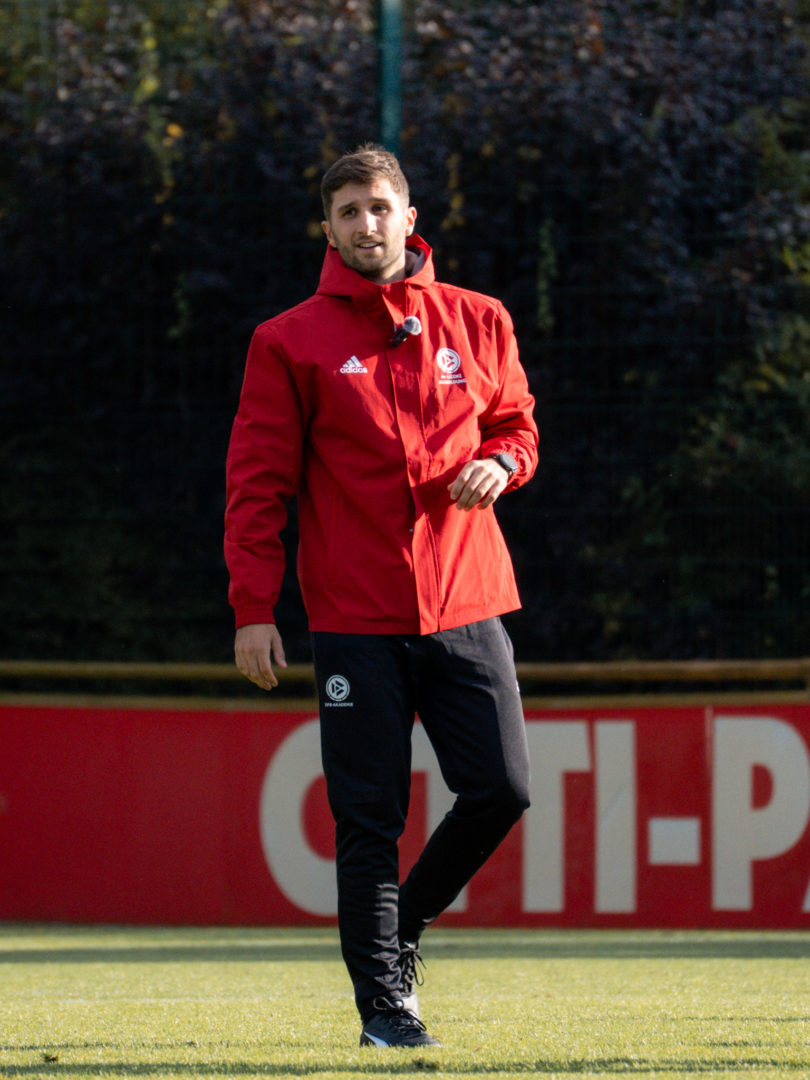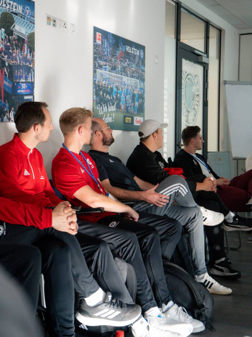 Mit dabei war auch unser U23-Co-Trainer Linus Schewior, der selbst Teil der aktuellen Lehrgangsgruppe ist. Die Ausbildung läuft über ein Jahr und umfasst insgesamt 540 Lerneinheiten – eine Mischung aus Online-Phasen, Präsenzblöcken und praktischer Anwendung im eigenen Verein. „Die ersten Wochen waren wirklich spannend und sehr erkenntnisreich“, sagt Schewior. „Klar, der Aufwand ist groß, aber der Mehrwert für unsere Arbeit hier bei Holstein ist enorm. Ich nehme viele neue Impulse mit.“