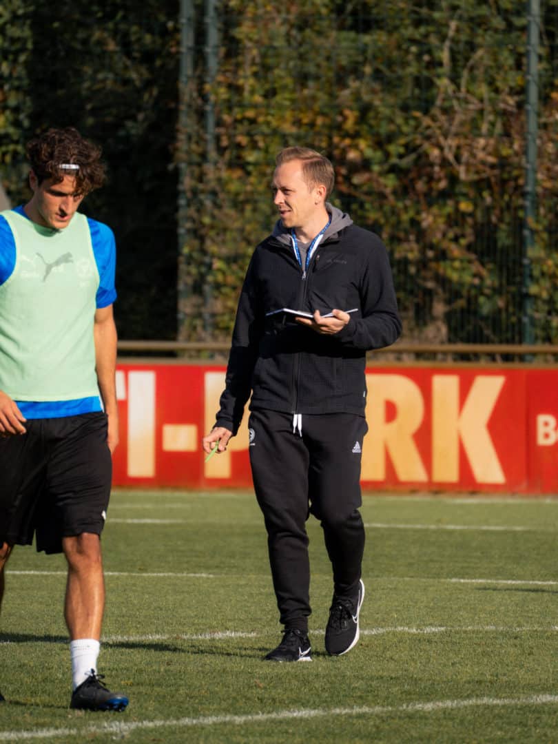 Neben Theoriestunden standen auch praktische Trainingseinheiten mit den Jungstörche-Mannschaften auf dem Programm. Darüber hinaus hatten die Teilnehmenden die Möglichkeit, sich direkt mit Holsteins Cheftrainer Marcel Rapp auszutauschen. „Spannend war auch zu sehen, wie meine Mitteilnehmenden Holstein Kiel wahrgenommen haben“, erzählt Schewior. „Viele waren positiv überrascht, von der Ruhe hier und der Bodenständigkeit im Verein, aber auch vom engagierten Arbeiten. Die Atmosphäre war super, wir haben insgesamt in der Gruppe ein tolles Arbeitsklima und eine gute Feedback-Kultur.“