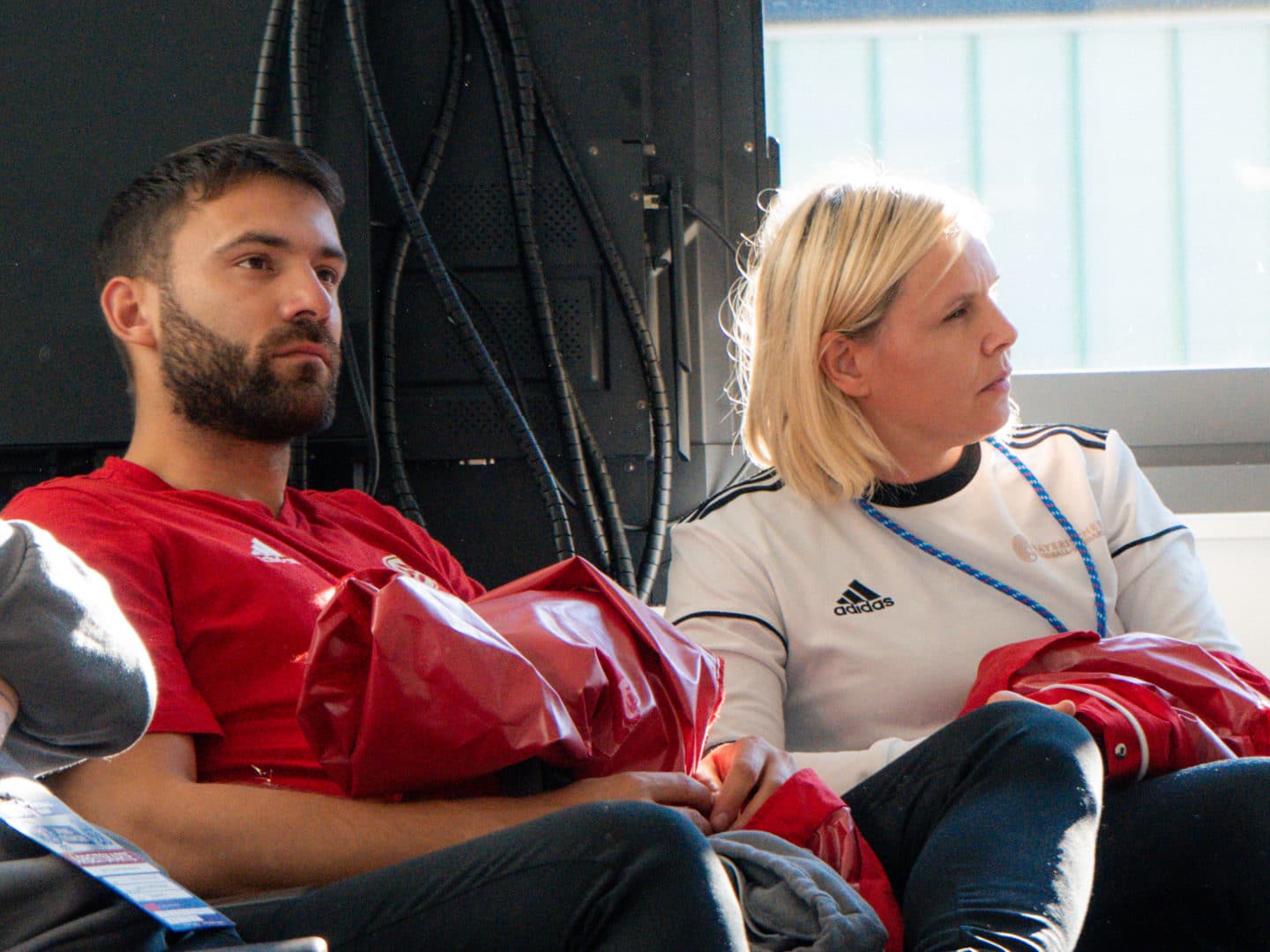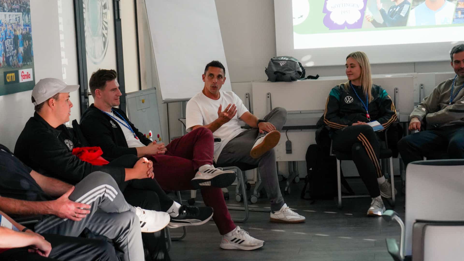 Neben Theoriestunden standen auch praktische Trainingseinheiten mit den Jungstörche-Mannschaften auf dem Programm. Darüber hinaus hatten die Teilnehmenden die Möglichkeit, sich direkt mit Holsteins Cheftrainer Marcel Rapp auszutauschen. „Spannend war auch zu sehen, wie meine Mitteilnehmenden Holstein Kiel wahrgenommen haben“, erzählt Schewior. „Viele waren positiv überrascht, von der Ruhe hier und der Bodenständigkeit im Verein, aber auch vom engagierten Arbeiten. Die Atmosphäre war super, wir haben insgesamt in der Gruppe ein tolles Arbeitsklima und eine gute Feedback-Kultur.“