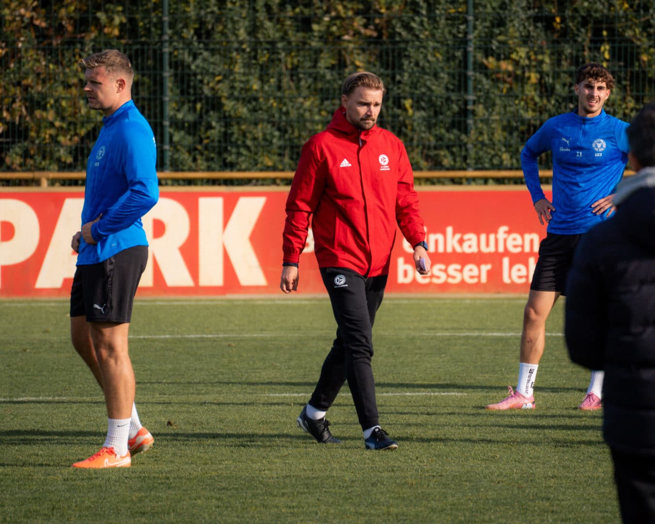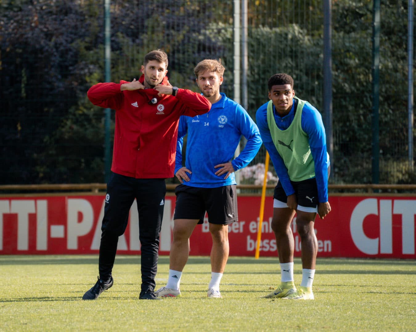 Mit dabei war auch unser U23-Co-Trainer Linus Schewior, der selbst Teil der aktuellen Lehrgangsgruppe ist. Die Ausbildung läuft über ein Jahr und umfasst insgesamt 540 Lerneinheiten – eine Mischung aus Online-Phasen, Präsenzblöcken und praktischer Anwendung im eigenen Verein. „Die ersten Wochen waren wirklich spannend und sehr erkenntnisreich“, sagt Schewior. „Klar, der Aufwand ist groß, aber der Mehrwert für unsere Arbeit hier bei Holstein ist enorm. Ich nehme viele neue Impulse mit.“