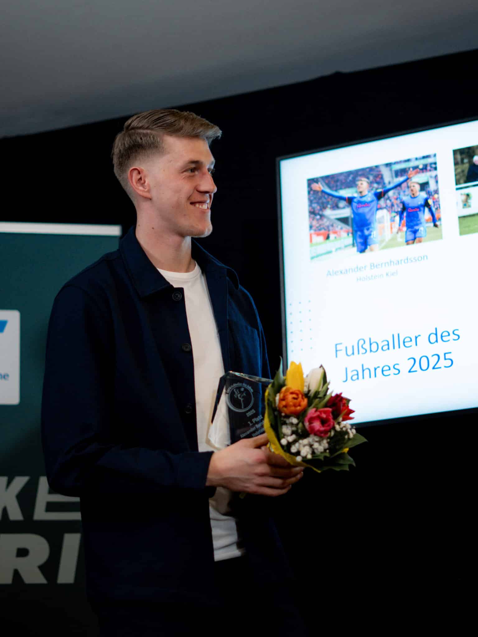 Neben Bernhardsson landeten bei den Männern zwei weitere Störche auf dem Treppchen: Silber holte Holstein-Kapitän Steven Skrzybski, der die Auszeichnung vor zwei Jahren entgegengenommen hatte, und Bronze ging an Kjell Knaak. Der 22-jährige Stürmer war im Januar dieses Jahres zur U23 unserer KSV gewechselt und war zuvor für den Oberliga-Konkurrenten MTSV Hohenwestedt aufgelaufen. Der ebenfalls nominierte David Zec wurde Siebter. „Diesen Preis hier heute erhalten zu haben, ist eine große Ehre für mich. Ich bin vor etwas mehr als zwei Jahren nach Kiel gewechselt, habe seitdem mit Holstein schon viele besondere Momente erlebt und fühle mich im Verein und der Region sehr wohl. Diese Auszeichnung gilt natürlich auch der gesamten Mannschaft, weil ich ohne meine Teamkollegen diese Trophäe jetzt mit Sicherheit nicht in den Händen halten würde“, sagte Bernhardsson, der im vergangenen Jahr sechs Bundesliga-Tore erzielte, regelmäßig für die schwedische Nationalmannschaft auflief und auch in der laufenden Saison mit starken Leistungen überzeugte.