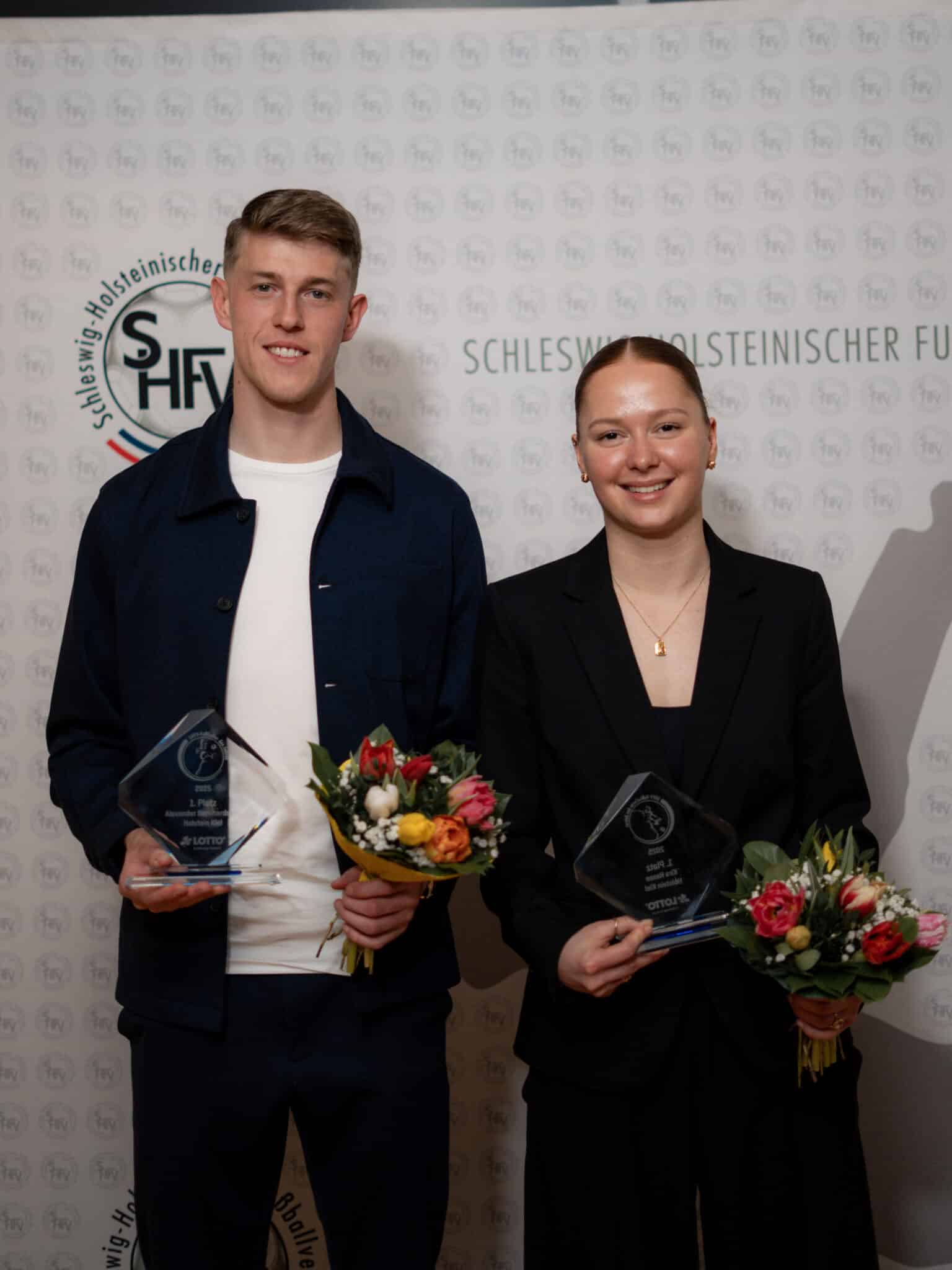 Doppelter Grund zur Freude im Storchennest: Bei der Ehrungsveranstaltung des Schleswig-Holsteinischen Fußballverbandes (SHFV), die am Montagabend im Druckzentrum des Schleswig-Holsteinischen Zeitungsverlages in Büdelsdorf stattfand, wurde nicht nur Alexander Bernhardsson als Fußballer des Jahres 2025, sondern auch Kira Hasse als Fußballerin des Jahres 2025 ausgezeichnet. Bei der Trainerwahl landete Ex-KSV-Coach Marcel Rapp auf Rang zwei.