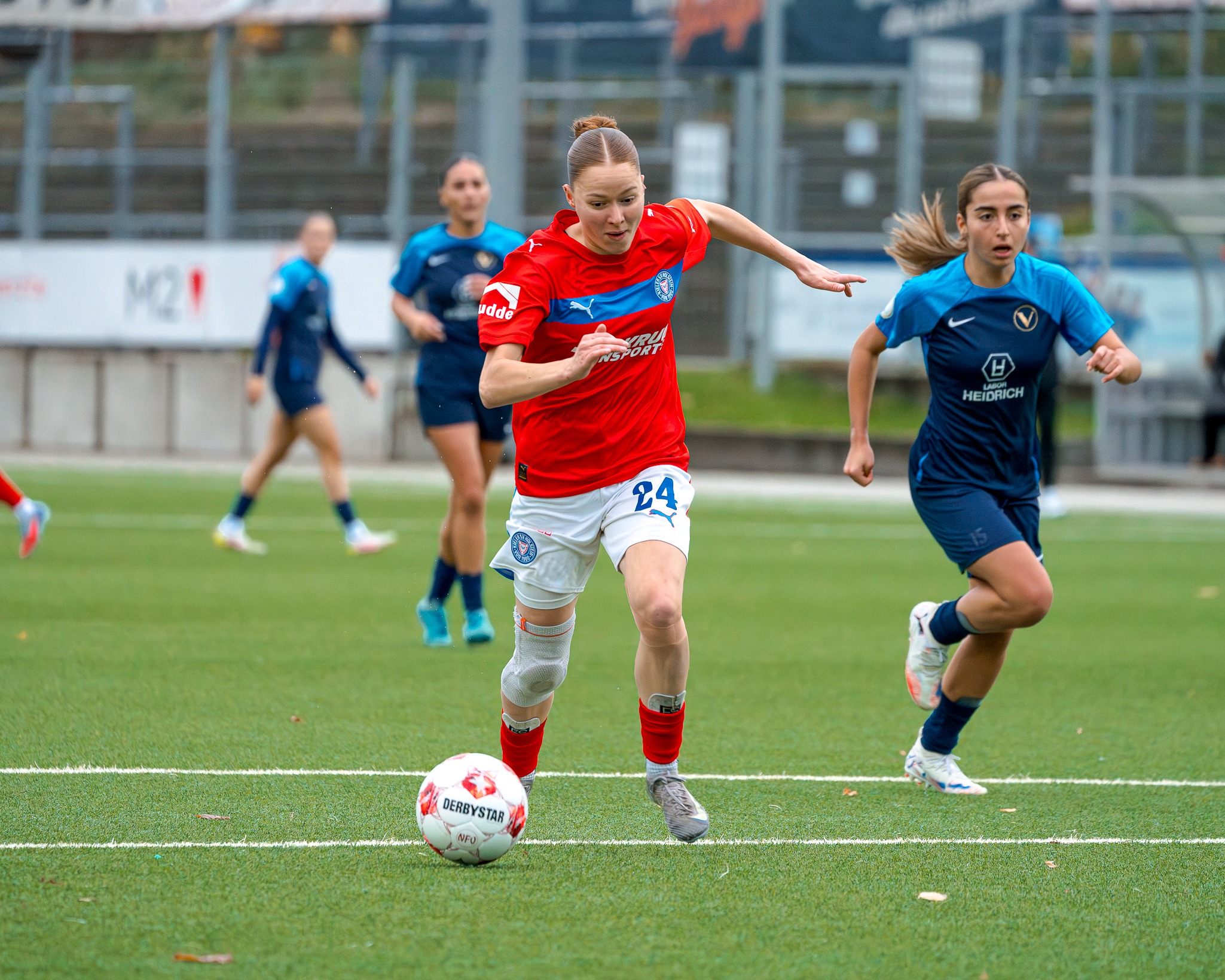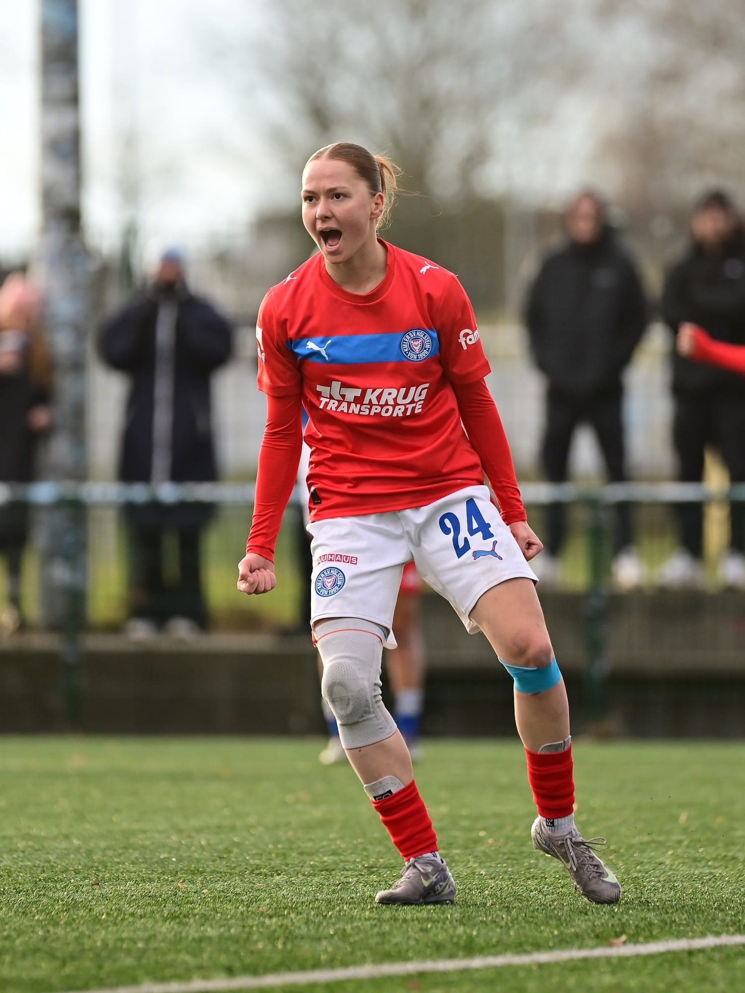 Bei den Frauen konnte sich mit Kira Hasse erstmals seit 2015, als Jana Leugers SHFV-Fußballerin des Jahres wurde, wieder eine Spielerin unserer Holstein Women den Titel sichern. Die 20-Jährige, die im Januar 2024 gemeinsam mit ihrer Zwillingsschwester Laura zu unseren Women gewechselt war, setzte sich gegen die zweitplatzierte Indra Hahn (SV Henstedt-Ulzburg) sowie die drittplatzierte Laura Bahr (SV Nienkattbek) durch. Die Women-Spielerinnen Alia Redant und Sarah Begunk landeten auf den Rängen fünf und sieben. „Als gebürtige Schleswig-Holsteinerin ist diese Auszeichnung für mich etwas ganz Besonderes. Ich möchte mich sowohl bei allen, die für mich gestimmt haben, als auch bei meinen Mitspielerinnen bedanken. Dieser Preis wird bei mir zuhause einen Ehrenplatz erhalten“, freute sich Hasse. Die Stürmerin hatte bereits in der vergangenen Spielzeit mit ihren Toren zur starken Saison der Holstein Women beigetragen und führt in der laufenden Saison mit 14 Treffern die Torjägerinnenliste der Frauen-Regionalliga Nord an.