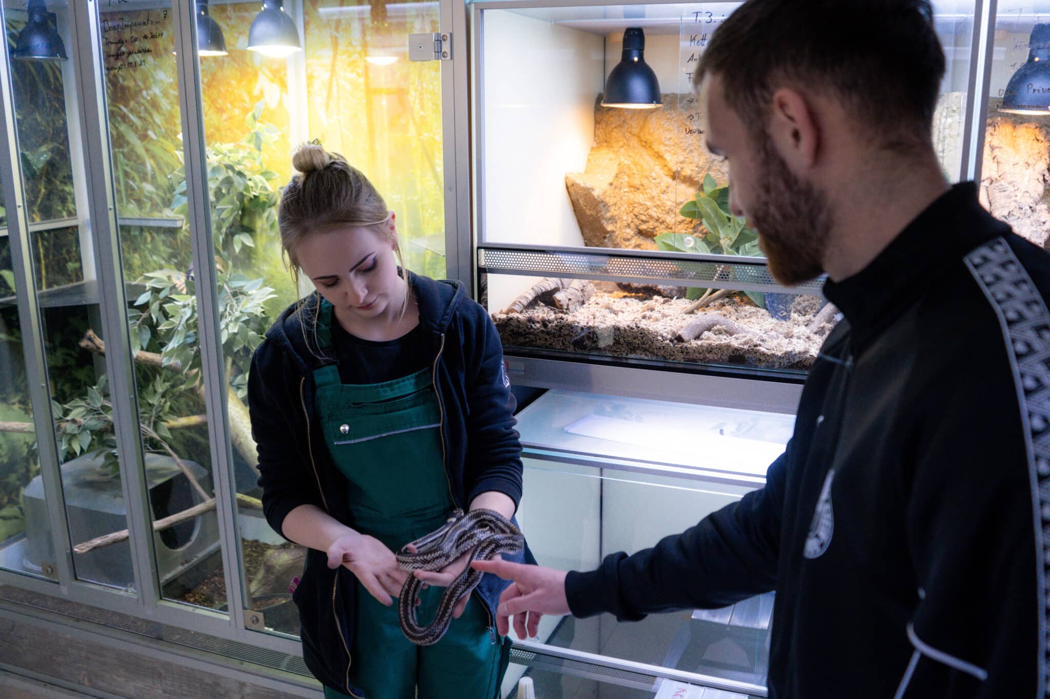 Tierheimleitung Julia Steen und Anja Lengwenat aus der Verwaltung führten die kleine Besuchergruppe über das Gelände und durch die Bereiche der verschiedenen Tiere – von Hunden und Katzen bis hin zu Schlangen und Igeln. „Bei uns findet ihr alle möglichen Tiere, mit Ausnahme von Spinnen und Fischen“, erzählte Lengwenat. Während unsere Jungs bei den Schlangen im Reptilien-Raum noch etwas zurückhaltender waren, wurden spätestens bei den Hunden und bei den Katzen fleißig Leckerlies verteilt und Haustiere gestreichelt.