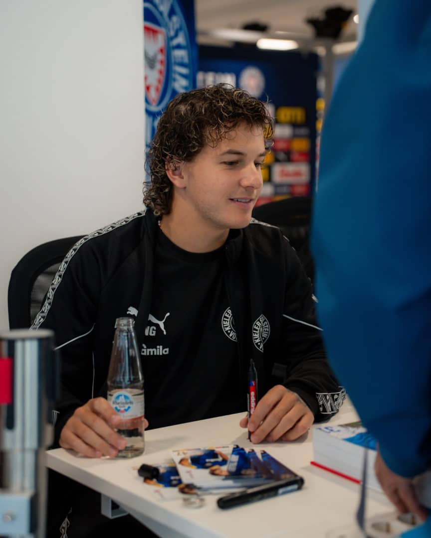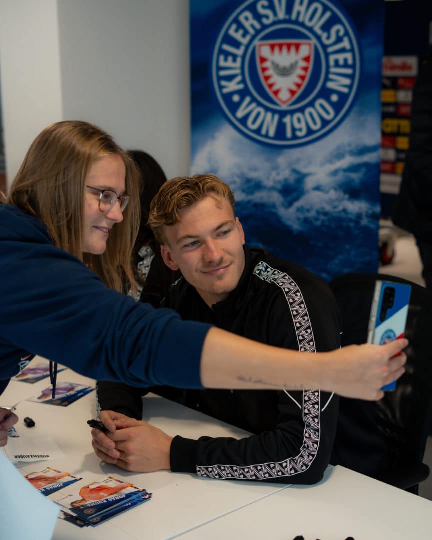 „Es hat viel Spaß gemacht, mit den Fans ins kurze Gespräch zu kommen“, betonte Cheftrainer Rapp und fügte an: „Es ist einfach schön zu sehen, wie groß das Interesse an Veranstaltungen wie heute ist. Das zeigt auch, welche Strahlkraft Holstein Kiel hat.“ Rapp und Co., die gerne allen Autogramm- und Selfiewünschen nachkamen, sorgten häufig für freudige Kinderaugen – genau wie Maskottchen Stolle, der nicht nur Umarmungen sondern auch Süßigkeiten an die jungen Fans verteilte.