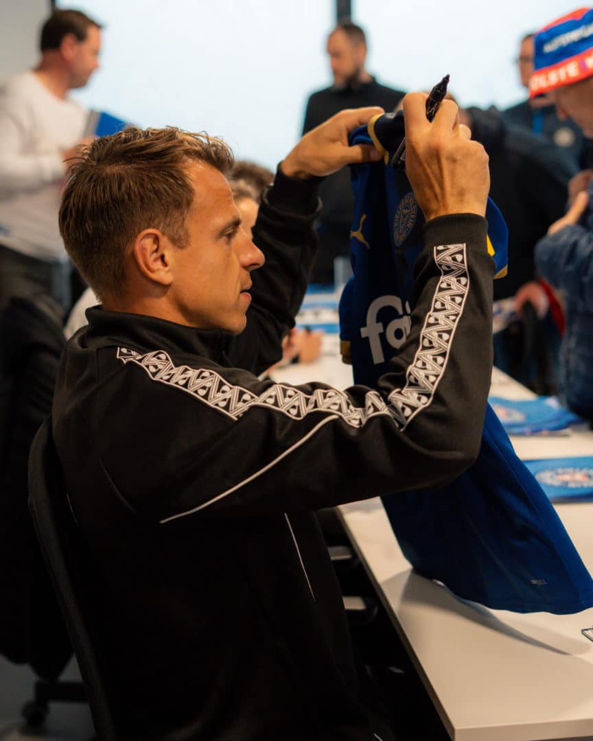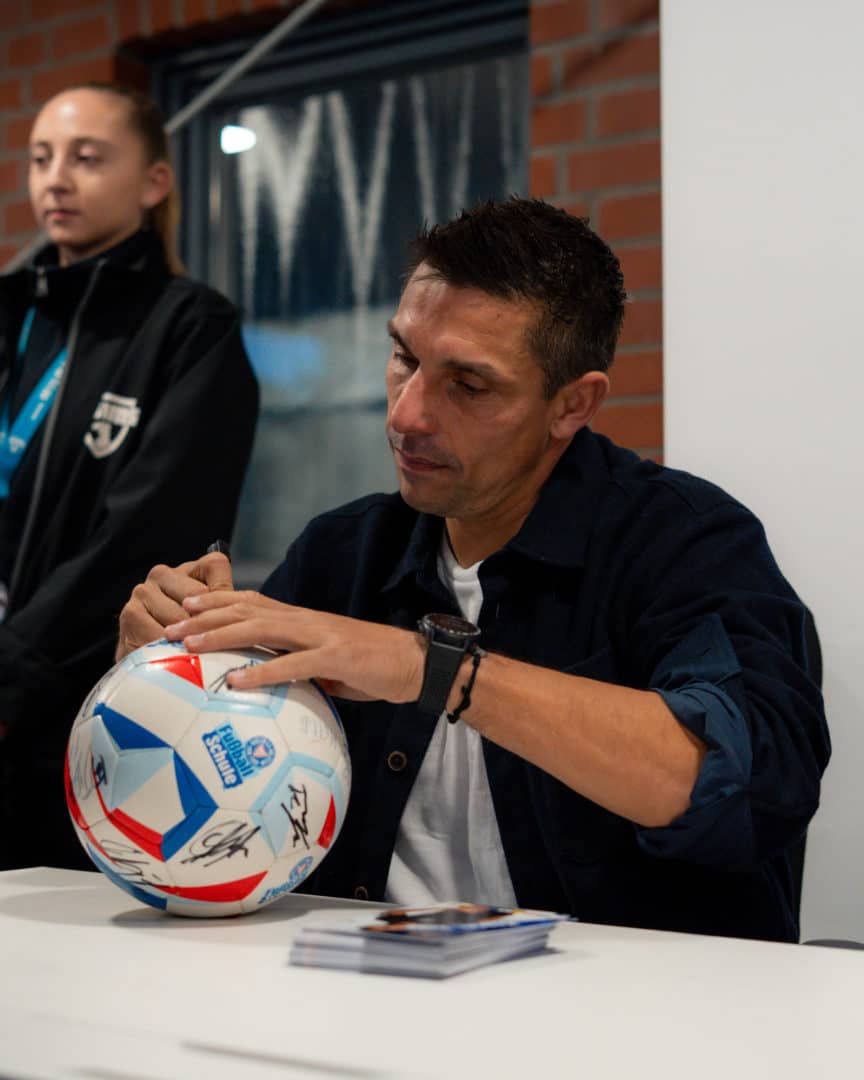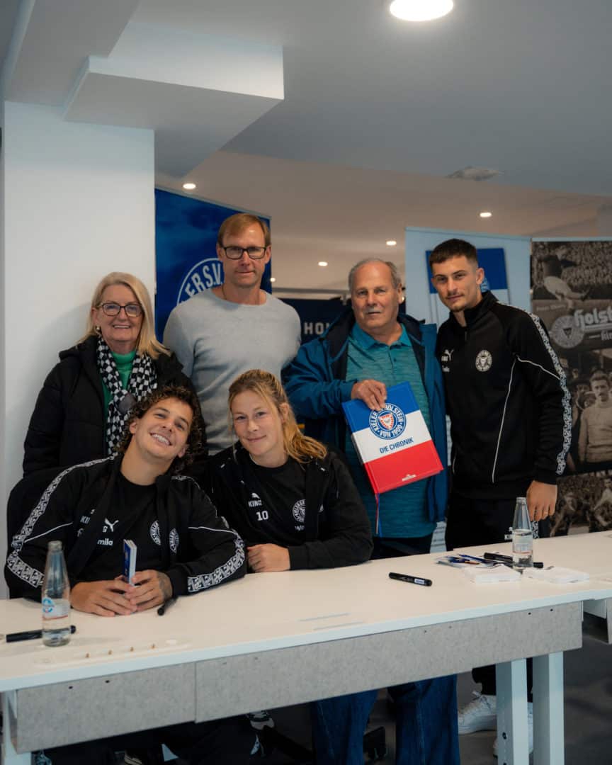 Neben aktuellen KSV-Profis wie Kapitän Steven Skrzybski, John Tolkin oder Adrián Kaprálik sowie Marcel Rapp und Co-Trainer Dirk Bremser waren auch die Holstein Women durch Kapitänin Sarah Begunk, Ronja Jürgensen, Lela Naward und die ehemalige Women-Kapitänin Rachel Hummel vertreten. Darüber hinaus waren auch zahlreiche verdiente Spieler der KSV-Historie sowie Vereinshistoriker und CHRONIK-Herausgeber Patrick Nawe vor Ort. Ob Kenneth Kronholm, Dmitrijus Guščinas oder Immo Stelzer – die Ex-Störche waren beliebte Fotomotive und viele Fans freuten sich, ihre Helden von damals wiederzusehen.