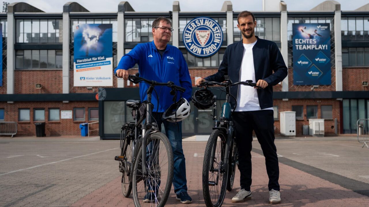 Unser Torhüter Marcel Engelhardt (re.) und Gerwin Stöcken, Kiels Dezernent für Sport und Gesundheit, freuen sich auf das diesjährige Stadtradeln