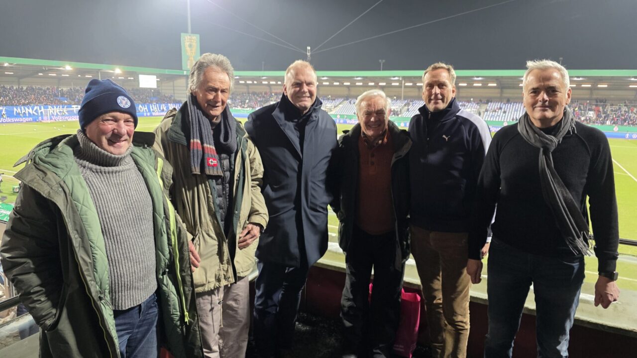 Anlässlich des diesjährigen Viertelfinals gegen Stuttgart waren die beiden damaligen Pokalhelden gern gesehene Gäste und wurden von Thorsten Neumann (1. Vorsitzender des Holstein Traditionsclub), Andreas Breitner (Aufsichtsratsvorsitzender) und Patrick Nawe (Club-Historiker) im Empfang genommen.
