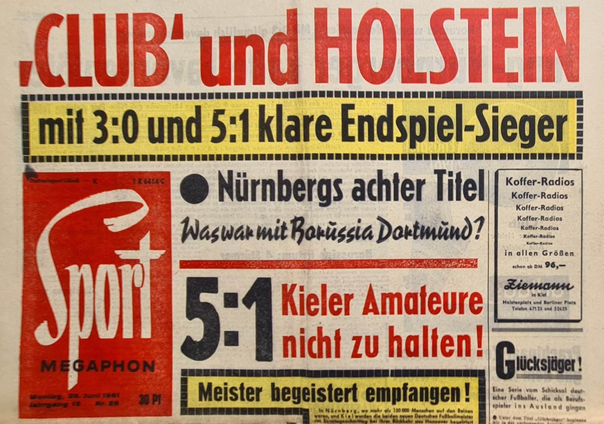 Nach einem erneut deutlichen 5:2-Erfolg gegen den Südwest-Meister FC Sobernheim konnten es die überglücklichen Holstein Amateure gar nicht fassen. Der Einzug in das Finale war besiegelt. Besondere Vorfreude kam zudem auf, weil das Endspiel, in dem Holstein auf Siegburg 04 traf, 1961 wieder einmal als Vorspiel zum „großen“ Finale um die Deutsche Meisterschaft ausgetragen wurde. In Hannover trafen Borussia Dortmund und der 1. FC Nürnberg aufeinander, natürlich vor ausverkauftem Haus – und entsprechend konnten sich auch die Teilnehmer des Amateurendspiels auf eine große Kulisse freuen. Im Vorfeld des Endspiels sicherte sich die Mannschaft von Erich Wolf den Landespokal und bereitete sich in der Lüneburger Heide auf den großen Tag vor.